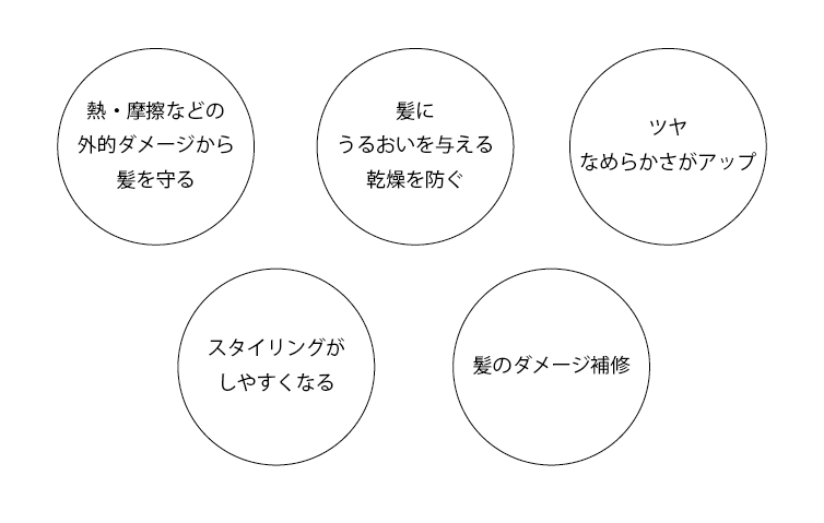 髪の表面をコーティングして、指通りをよくしたり、自然なツヤ感を出す効果があります。